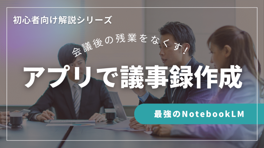AI関連 会議後の残業をなくす!NotebookLMで議事録を作成する超簡単ステップ 【AI議事録】会議後の残業をなくす!NotebookLMに音声データとメモを放り込むだけで、正確な議事録を作成する3ステップを具体的な事例付きで解説します。 2025.10.01 AI関連IT全般