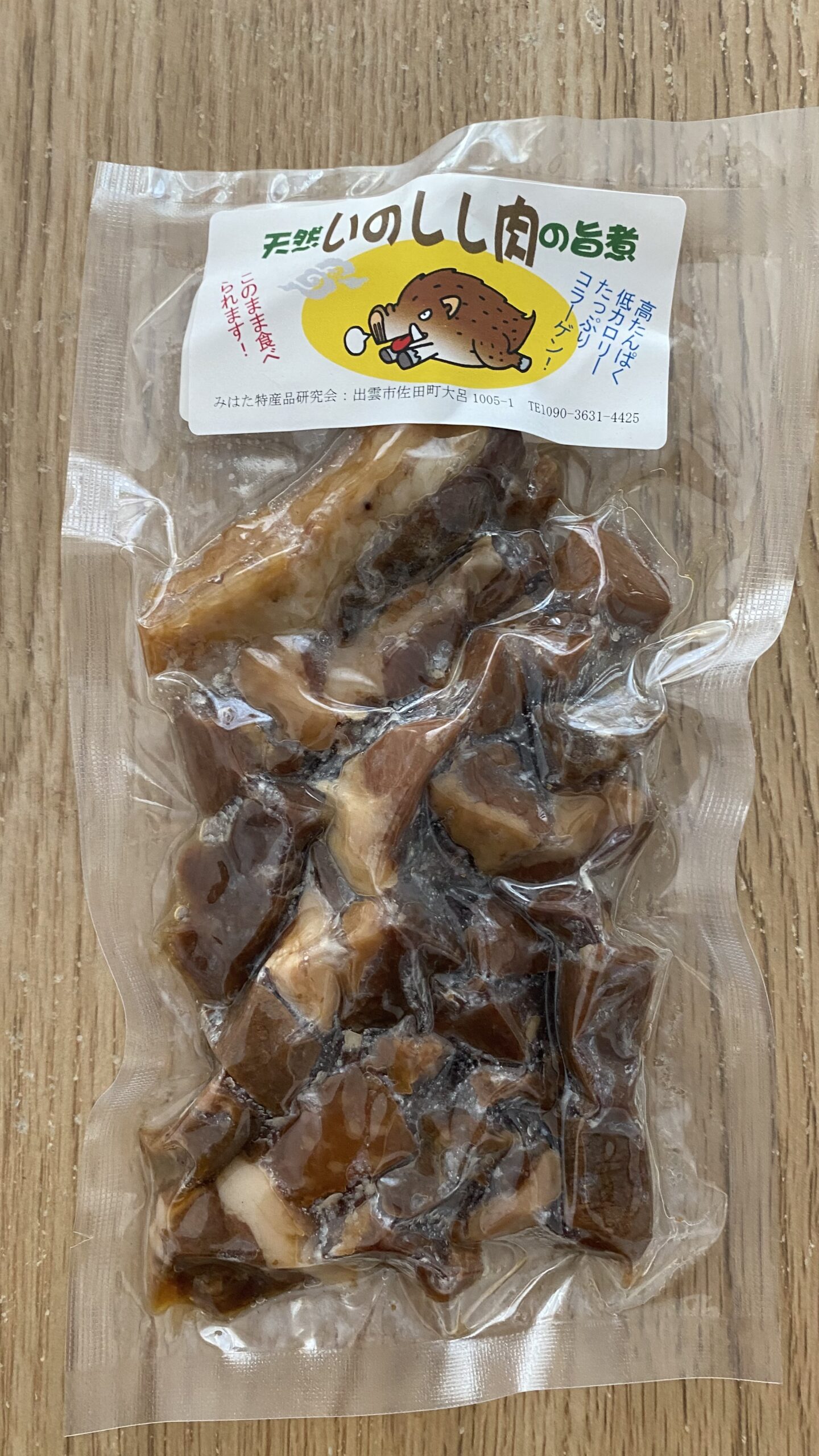 いのしし肉を使った「コロッケ」や「うま煮」も販売されています。地元で採れた野菜の販売も。