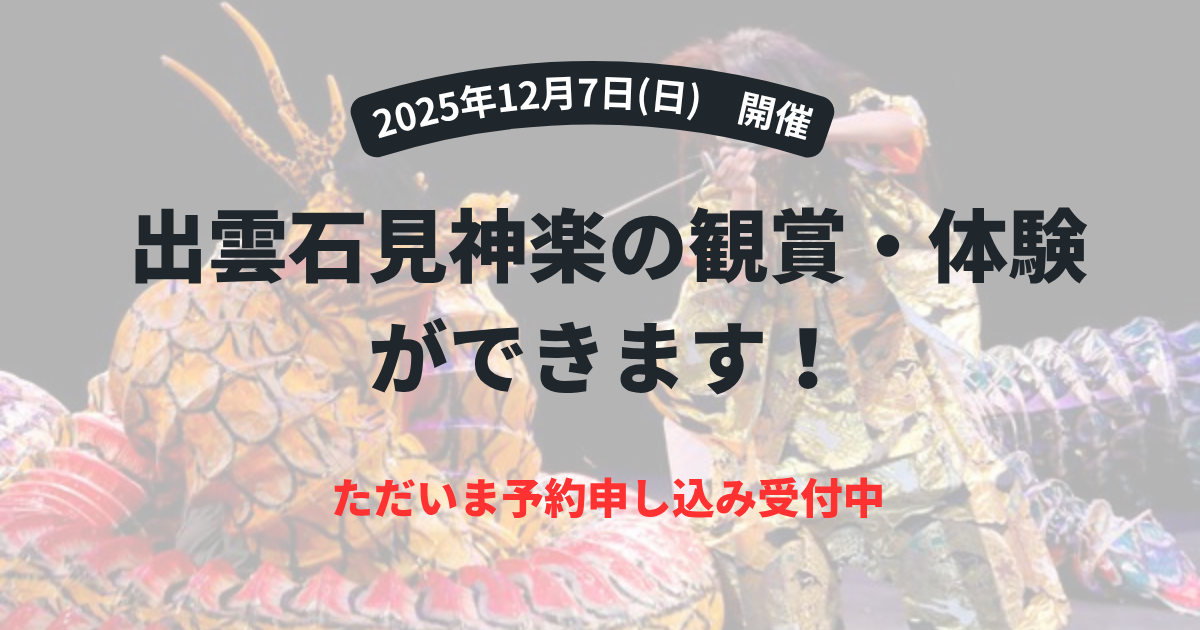 | 申し込み方法 | 出雲観光協会「出雲旅」予約サイトからオンライン申し込み |