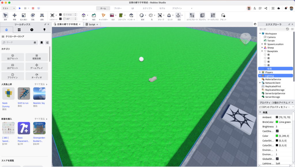現在は、Roblox Studioの中に吉栗の郷の地形を少しずつ構築し始めたところです。