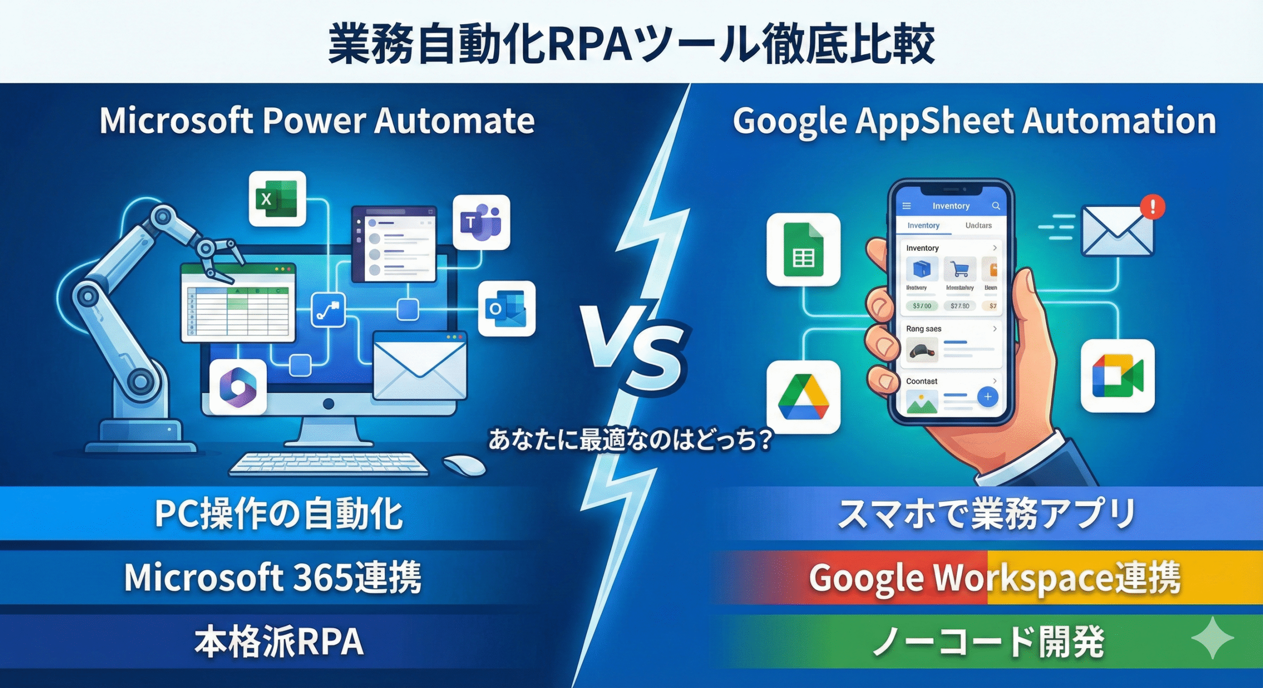 今回は Microsoft の Power Automate と、Google が提供する AppSheet Automation を比較しながら、どんな方にどちらが向いているかを分かりやすく解説します。